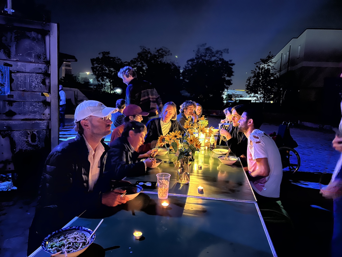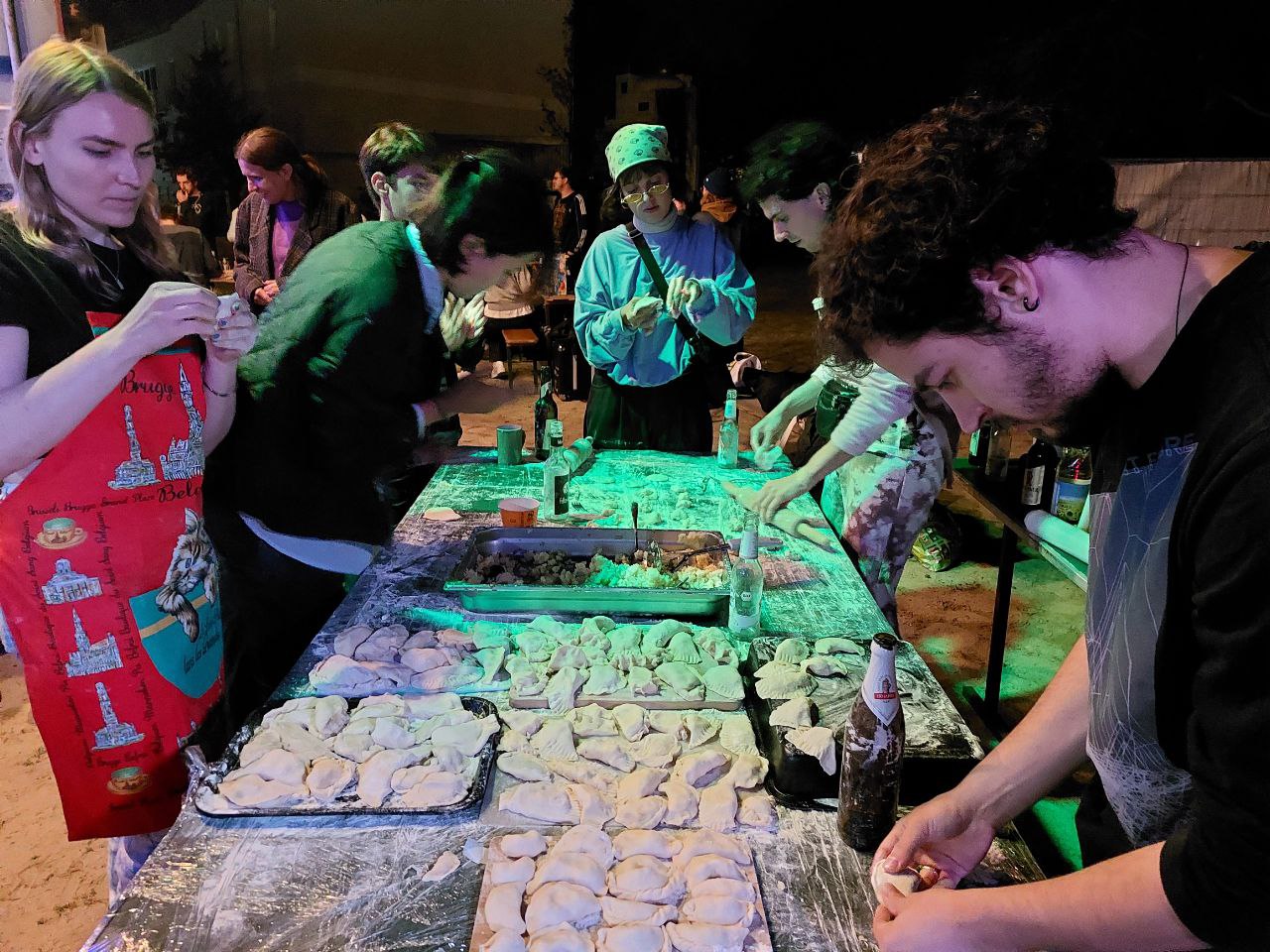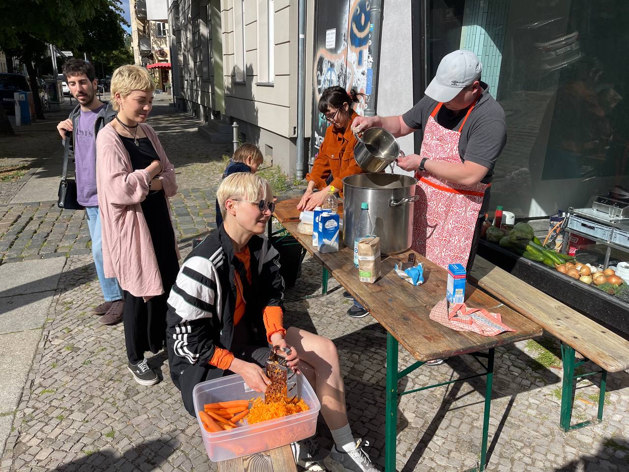 Boiling Room is an event series initiated to support people escaping from war regions. Each event combined a cooking session accompanied by a DJ set, leading up to a dinner. Occasionally the events would feature interviews with activists, readings, artistic interventions. The project started amidst the Covid19 pandemic and some of the events ran a livestream of the DJ set or the cooking process, which served to raise donations for independent defence initiatives of people in Ukraine, working on the borders and all across Europe to help those in need. The events were an opportunity for people who arrived in Berlin with no community, to connect with locals and other people in a similar situation.